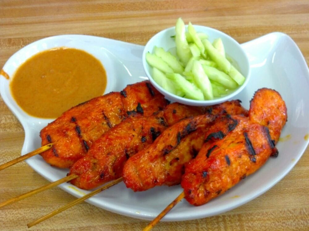 Sauteed meat in sweet and sour sauce with pineapples, cucumbers, onions and tomatoes. Sasonado dulce al estllo Thai y agrio salsa enpina, pepinos, cebollas y tomates.