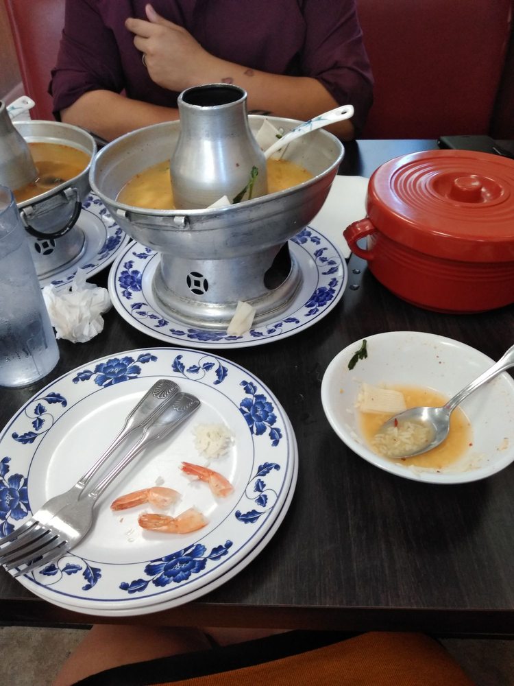 Choice of meat, glass noodles and mixed vegetables in clear soup. A escogar carne en sopa con pasta transaparentes y vegetales.